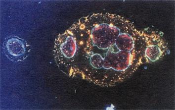 Это клетка лимфомы, одного из видов рака, которая размножается в лимфатической системе, создавая опухоль.