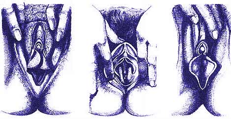 Некоторые варианты внешнего вида влагалища и клитора(Betty Dodson "Selflove and Orgazm", 1983)