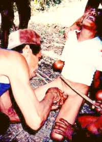 плоть пениса и срезают ее с головки пениса. Таким образом пенис лишается одной
