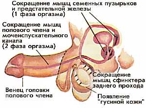 Под действием импульсов, поступающих по нервным волокнам непосредственно к половому члену, происходит расширение просвета артерий, снабжающих его кровью. При этом значительно усиливается поступление артериальной крови к головке и кавернозным (пещеристым) телам, а венозный отток замедляется. В результате кровь быстро заполняет губчатую ткань пещеристых тел с увеличением их объёма в 3-4 раза. Одновременно с этим происходит натяжение и выпрямление полового члена. После развития эрекции приток крови по питающим артериям уравновешивается с её венозным оттоком из кавернозных тел, что сохраняет необходимое для проведения полового акта напряжение эрегированного полового члена. Головка члена даже в состоянии полной эрекции остаётся эластичной и препятствует травмированию женских половых органов. После семяизвержения и оргазма или в ситуации, исключающей сексуальную близость, усиливается венозный отток из кавернозных тел с постепенным снижением притока артериальной крови, напряжение и объём полового члена начинают уменьшаться. Время полного расслабления пениса зависит от влияния многих внешних раздражителей, которые способствуют поддержанию полового возбуждения или же, наоборот, отвлекают внимание мужчины от его сексуальных реакций. На пример, исчезновение эрекции после эякуляции происходит медленнее, если половой член остаётся во влагалище, поскольку в этом случае продолжается его стимуляция вследствие непосредственного контакта полового члена и влагалища.