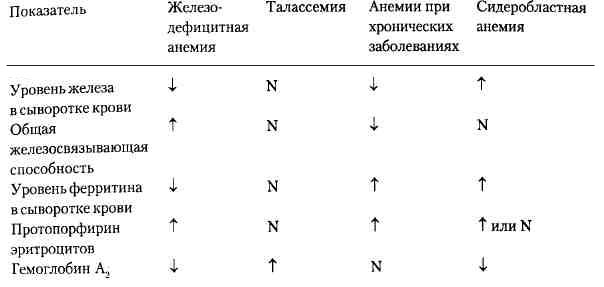 Таблица 135-6 Дифференциальный диагноз микроцитарной гипохромной анемии