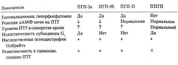 Таблица 155-5 Классификация псевдогипопаратиреоза (ПГП) и псездопсевдогипопаратиреоза (ППГП)