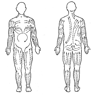 - при массаже верхней и средней части спиным от позвоночного столба в стороны, к подмышечньм впадинам;