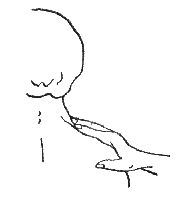 Больной сидит, наклонив голову вперед. Точка массируется средним пальцем. Продолжительность воздействия на точку - до 10 минут.