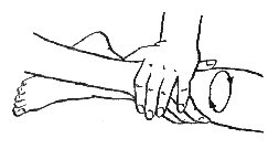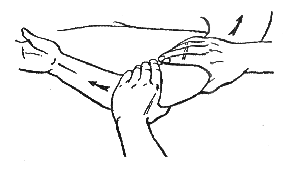 Двойное кольцевое продольное разминание. Применяется при массаже передней поверхности бедра и задней части голени.