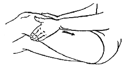 поглаживающие движения по наружной, а затем внутренней поверхности бедра от коленного сустава вверх, не доходя до паховой области. Далее нужно произвести растирание более энергичными кругообразными движениями по наружной поверхности бедра.