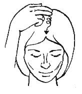 Подушечками четырех пальцев необходимо произвести давящее поглаживание от надбровных дуг по направлению к передней границе волосяного покрова, затем следует сомкнуть пальцы и ладонью погладить лоб снизу вверх - от надбровных дуг до края волосяного покрова.