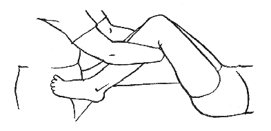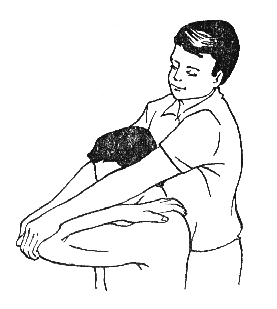 Данный прием больше, чем предыдущий, подходит для больных, имеющих неравномерную установку таза, конечности разной длины. Применяется он при артрите тазобедренного или коленного сустава.