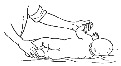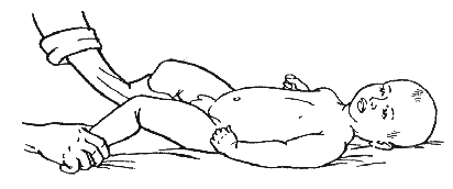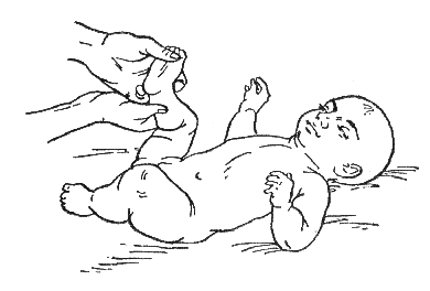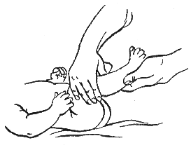 Для проведения процедуры следует развести колени таким образом, чтобы пятки ребенка соединились (рис. 272).