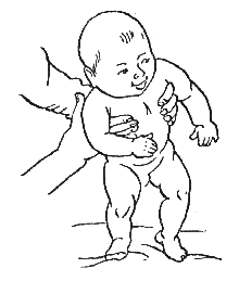 В 9 месяцев ребенок делает первые попытки к самостоятельному хождению. Родители должны поощрять это стремление ребенка. В первое время следует водить его за руки, давать ему опираться на любой движущийся предмет, например, на коляску. Однако ребенок может передвигаться и с помощью недвижимых предметов -г детской кроватки, манежа и т. д. Не следует пугаться, если ребенок вдруг падает. Это не опасно. В процессе падения ребенка развивается его опорно-двигательный аппарат. Не стоит сразу бежать к нему на выручку. Он должен сам постепенно учиться подниматься на ножки. Необходимо создать для ребенка благоприятные условия для самостоятельного хождения, чтобы при падении он не получил какую-либо травму. Родители должны помогать ему лишь в том случае, если ребенку еще тяжело удерживаться на ногах и он постоянно падает.