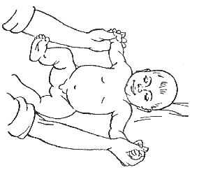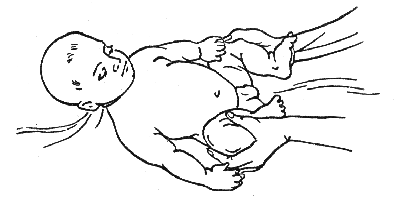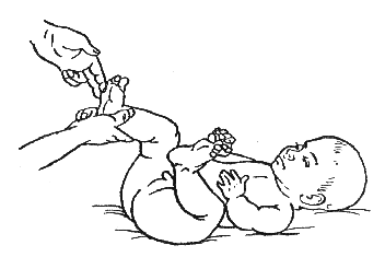 При выполнении этого упражнения исходное положение ребенка остается таким же, как и при предыдущих приемах массажа живота.
