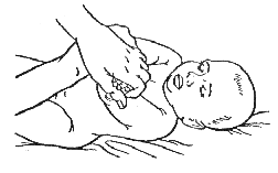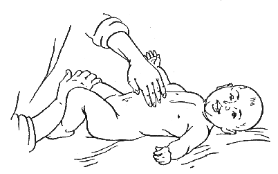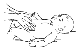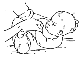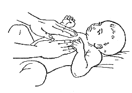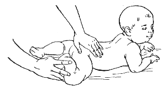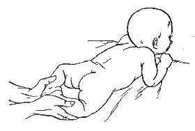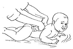 В заключение процедуры можно применить прием поколачивания ягодиц. Для этого следует осторожно ударять по ягодицам ребенка подушечкой указательного пальца. Затем сделать еще несколько поглаживающих движений.