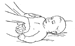 на грудь ребенка таким образом, чтобы большие пальцы были в центре грудной