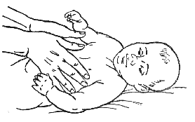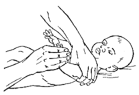 клетки, а остальные четыре - в области ребер. Процедура заключается в легком и ритмичном надавливании пальцев на грудь ребенка. Прием способствует развитию дыхательной системы ребенка.