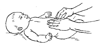 Для проведения процедуры необходимо поглаживать живот ребенка плавными круговыми движениями по часовой стрелке. Во время массирования запрещается затрагивать половые органы ребенка и область правого подреберья. Процедуру нужно повторять 5 раз.