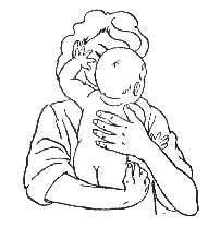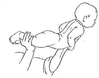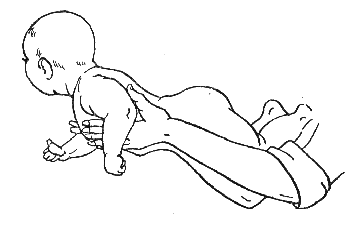 1. И. п. - ребенок на руках матери, лицом к ней. Следует выполнить ритмичные надавливания на спину ребенка, передвигая ладонь от шеи до поясницы.