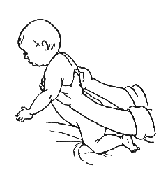1. "Ползание". И. п. - ребенок в положении на животе. Следует приподнять туловище ребенка на 5-10 см, при этом полусогнутые ноги ребенка должны отталкиваться от ладони взрослого.