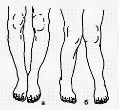 Изменения формы ног: а - варусная установка стопы; б - вальгусная установка стопы