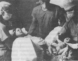 ребенка, еще связанного с матерью пуповиной. На нижней фотографии