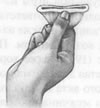 диафрагму спермицидным кремом, сжать ее края двумя пальцами;