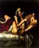 Артемизию Джентилески девочкой-подростком в 1611 г пытался то ли изнасиловать, то ли совратить ее учитель рисования (был громкий судебный процесс). Этот травматический эпизод, по мнению биографов, отразился в ее творчестве таким образом, что она любила рисовать сильных полуобнаженных женщин и не особенно симпатичных.мужчин. Ее "Юдифь, обезглавливающая Олоферна " (1618, Уффици) (рис.1) выглядит настолько свирепой, что, если не знать библейской истории, можно пожалеть беднягу Олоферна. К сожалению, картина неубедительна, потому что художница плохо знала анатомию.