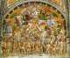 На фреске "Изгнание Адама и Евы из рая" (рис.6) оба грешника покидают рай и горько плачут, причем не особенно красивая Ева одной рукой прикрывает чресла, тогда как Адам обеими руками закрывает лицо, открывая взгляду зрителя довольно большие гениталии. Хотя обе фигуры анатомически не вполне точны, они выглядят живыми. После Тридентского собора на обеих фресках были дописаны фиговые листки, но при последней реставрации их убрали.