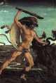 Одержимость героическим мужским телом хорошо выражена в картинах Антонио Полайуоло (1432 -1498), посвященных подвигам Геракла "Геракл и Гидра" (рис. 12) и "Геракл и Антей" и в его знаменитой гравюре "Битва нагих" (рис. 13). Эта гравюра, воспроизводящая проданный в Испанию и утерянный бронзовый барельеф, кажется созданной специально для того, чтобы показать возможности мужского тела в самых разнообразных позах. В то же время эта битва, все участники которой готовы убить друг друга, чем-то напоминает балетную сцену. Современники считали Полайуоло самым выдающимся мастером изображения обнаженного тела. По словам Вазари, он превосходил в этом отношении всех своих предшественников. Кроме того, он первым стал специально изучать для этого анатомию и работать с трупами.
