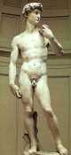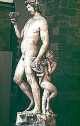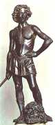 Заслуга Донателло - не столько в том, что он изображает нагое мужское тело, сколько в необычности самого этого тела. Его бронзовый "Давид" (около 1430, музей Барджелло) (рис. 3) выглядит не суровым библейским героем, а кокетливым андрогинным подростком, странным образом сочетающим мускулистые руки с женственной мягкостью и округлостью бедер; его эротическая соблазнительность еще больше подчеркивается экзотической шляпой и высокими сапогами. Ни до, ни после Донателло никто Давида таким не изображал. Его оригинальность особенно ясно выступает при сравнении с другим, мраморным, "Давидом" самого Донателло (рис.4) и великолепным бронзовым "Давидом" Андреа Вероккьо (1465, музей Барджелло) (рис. 5).