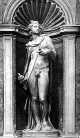 Самая известная скульптура знаменитого флорентийского и венецианского скульптора и архитектора Джакопо Сансовино (1486 - 1570) , в которой чувствуется его соперничество с Микеланджело, - "Вакх" (1512) (рис 34) изображает улыбающегося нагого юношу, стоящего с поднятой в руке чашей. Позже, в Венеции, Сансовино изваял слегка андрогинных "Аполлона" (рис. 35) и "Меркурия". В то же время выполненные под его руководством огромные статуи "Нептуна" (рис. 36) и "Марса" на Лестнице гигантов во Дворце Дожей (1554 -1566), подчеркнуто массивны и монументальны..