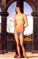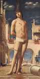 Святой Себастьян (1476, Дрезденская галерея, рис.44 ) Антонелло да Мессина (1430 -1479) - красивый молодой человек в узких обтягивающих плавках, который спокойно стоит на площади, слегка выставив вперед правую ногу. Такой же мягкий андрогинный образ Себастьяна рисует Либерале да Верона (1485, Милан, пинакотека Брера).