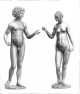 В ХVI в. юные Адамы уже не вызывали в Германии негодования. Любимец бургундских герцогов Конрад Майт из Вормса (1475 ?-1550) высек удивительно симпатичных, совсем юных и совершенно голых Адама и Еву (деревянные статуэтки из красно-коричневого бука, около 1510 г., музей в Готе) (рис. 48) А представитель знаменитой династии немецких скульпторов Ганс Фишер ( Vischer) (1489- 1550) изваял очаровательного своей непринужденностью "Идущего подростка" (бронза, Мюнхенский национальный музей) (рис. 49)