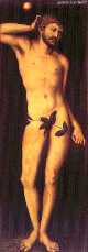 В немецкой живописи первой половины ХVI в. обнаженные тела Адама и Евы полнее и лучше всего представлены в творчестве Лукаса Кранаха Старшего (1472 -1553). Особенно хорош его бородатый Адам, задумчиво почесывающий собственный затылок (1528, Уффици, рис.50). Это незатронутое ренессансными изысками юное тело пленяет простотой и безыскусностью.