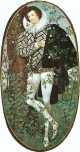 За флуктуациями моды стояли сдвиги в представлениях о мужской красоте. На ранних средневековых портретах мужские ноги выглядят сильными, толстыми и мощными. В позднем средневековье и в эпоху Возрождения мужские ноги удлиняются и становятся тоньше, художники подчеркивают их изящество и элегантность. Одновременно у мужчин появляется узкая талия и тонкие руки с длинными пальцами. "Юноше, прислонившемуся к дереву" (1588, Музей Виктории и Альберта) знаменитого английского художника-миниатюриста Николаса Хилльярда (1547 -1619) (рис.62) не откажешь в элегантности.