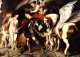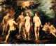 Для Петера-Пауля Рубенса (1577 - 1640) очарование обнаженного тела не в изяществе и легкости форм, а в изобилии пышной живой плоти, которая для него эквивалента женственности. Рубенсовская женщина - живой символ плодородия, на фоне которого мужчина теряется. Рубенс почти никогда не рисует обнаженных мужчин и женщин вместе: если женщина раздета, то мужчина должен быть одет, и наоборот (например, "Персей и Андромеда", рис.69). Раздетый мужчина автоматически становится пассивным и мягким, а недостающее изящество ему, как и женщине, часто заменяют габариты. Рубенсовский "Вакх" (1577, Уффици, рис. 70) - настоящее воплощение раблезианского гротескного тела, у которого мускулы заплыли жиром и которое тем не великолепно. Мужских гениталий Рубенс никогда не рисует. На картине "Суд Париса" (1600, рис.71) все три богини стоят лицом к зрителю, а Парис - спиной.
