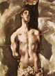 Если для Рубенса тело - это плоть, которая по определению женственна, то у Эль Греко (1545-1614) мужская нагота почти бестелесна. Духовное просветление приходит вместе с физическим страданием. Изможденное тело "Святого Иеронима" (1610/14, Прадо) практически лишено мышц, у него выпирают все ребра. "Святой Себастьян" ( Прадо, рис.72) Эль Греко не позирует, как большинство его ренессансных собратьев, ему по-настоящему больно. Особенно выразителен его "Лаокоон" (1610/14, Вашингтон, Национальная галерия, рис.73), где удлиненные, как всегда у Эль Греко, и искривленные страданием и болью светлосерые нагие тела выделяются на фоне темного грозового неба. Хотя, в противоположность Рубенсу, Эль Греко не стесняется фронтальной наготы, ни о каком любовании, соблазне или эротике в его картинах нет речи. Вместе с тем это аскетическое тело не вызывает жалости, оно демонстрирует торжество духа над плотью, и не случайно для этого выбрано мужское тело ( женщин художник изображает значительно мягче).
