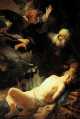 Величайший мастер психологического портрета Рембрандт (1606 - 1669) мало интересовался мужской наготой. Если художники ХVII в. постоянно жаловались на физическое несовершенство своих моделей, то для Рембрандта индивидуальное своеобразие интереснее абстрактной красоты. Однако эту индивидуальность Рембрандт ищет не в теле, а в лице. Его этюды мужского тела выглядят поспешными и несовершенными. На самом деле ему просто не нужны детали. Хотя в центре "Жертвоприношения Авраама" (1635, Эрмитаж, рис.74) лежит выделенное светом беспомощное обнаженное тело Исаака, главным действующим лицом картины остается Авраам, именно его лицо больше всего интересует художника.