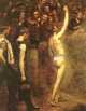 Наличие публики позволяет художнику показать не только тело спортсмена, но и тот взгляд, на который он ориентируется и который его в известном смысле "создает". На картине "Между раундами" (рис.5) Икинс изображает отдыхающего боксера, а на картине "Salutat" (1898, рис.6) боксер-победитель, подобно римскому гладиатору, откровенно демонстрирует восхищенным мужчинам-зрителям свое обнаженное, одетое только в плавки, тело. Параллель с древним Римом выражена не только в позе боксера, но и в названии картины: гладиаторы обращались к императору со словами Ave Caesar, morituri te salutat ("идущие на смерть приветствуют тебя"). Теперь место цезаря занимает публика. Изображенные художником зрители идентифицируются не столько с самим боксером, сколько с его победой, но для тех, кто смотрит картину, тело боксера, пожалуй, важнее поединка, которого они не видели. "Мужское наслаждение мужскими формами было оправдано, позволив выразить гомосоциальное удовольствие через объект, скрывающий возможность такого удовольствия; иными словами, эстетическое скульптурное удовольствие отодвинуло проблему эротического телесного удовольствия".